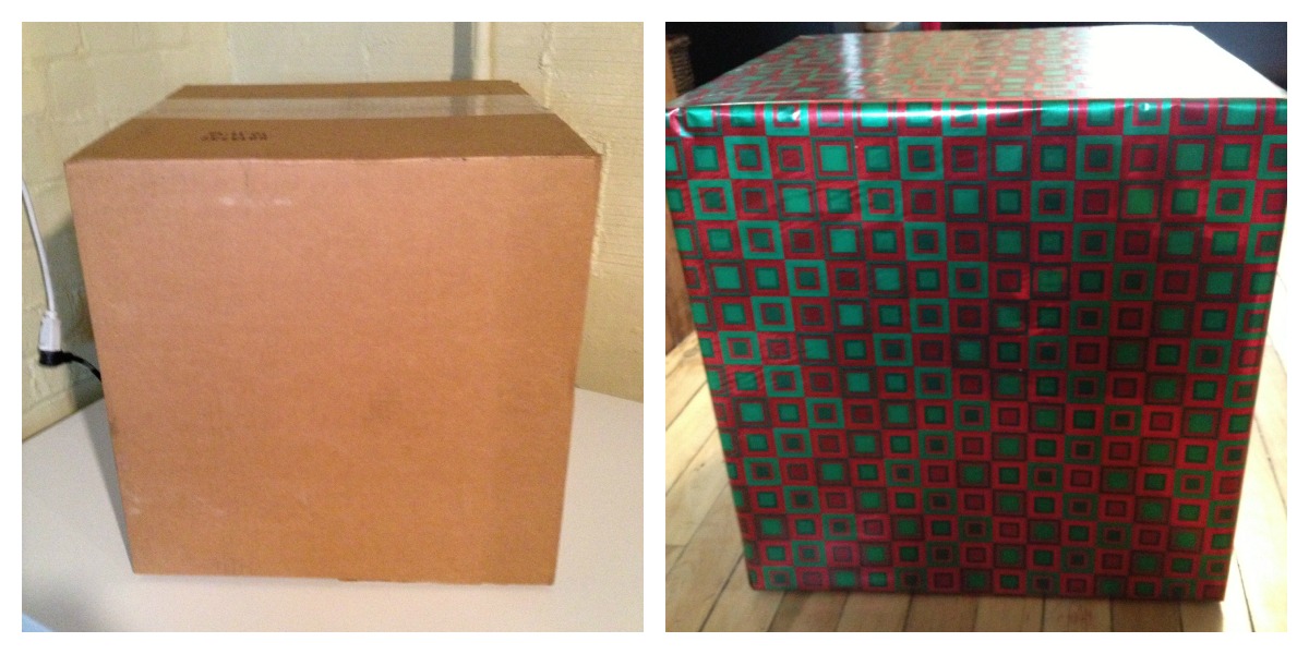 To start, we took the box and taped down the open side. Then we I wrapped it with wrapping paper.