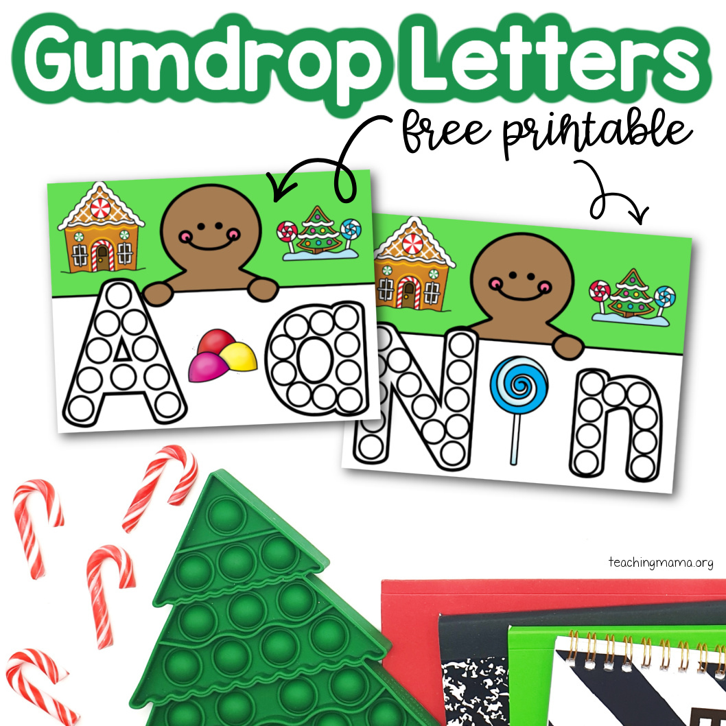 This gumdrop letter mats activity is a print-and-go! You can print the pages onto cardstock paper and laminate them for durability. When you’re ready for the activity, simply set out a bowl of gumdrops or pom poms.