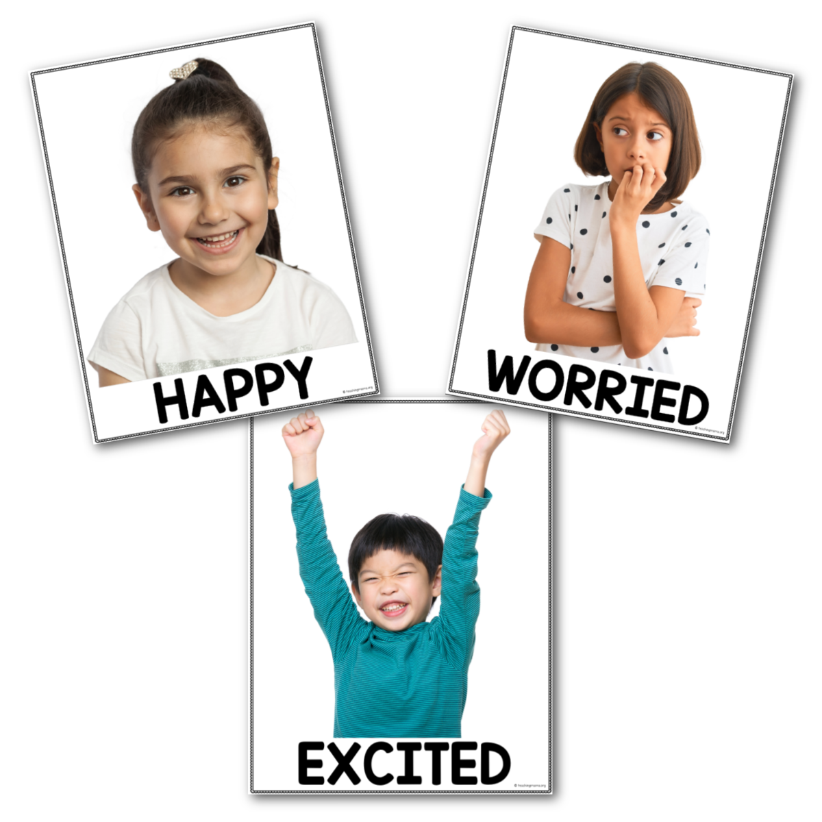 I suggest keeping a set of visual emotion cards in your classroom. Point to them and talk through feelings during calm and tough moments. The picture below shows the printable posters included in The Printables Club.